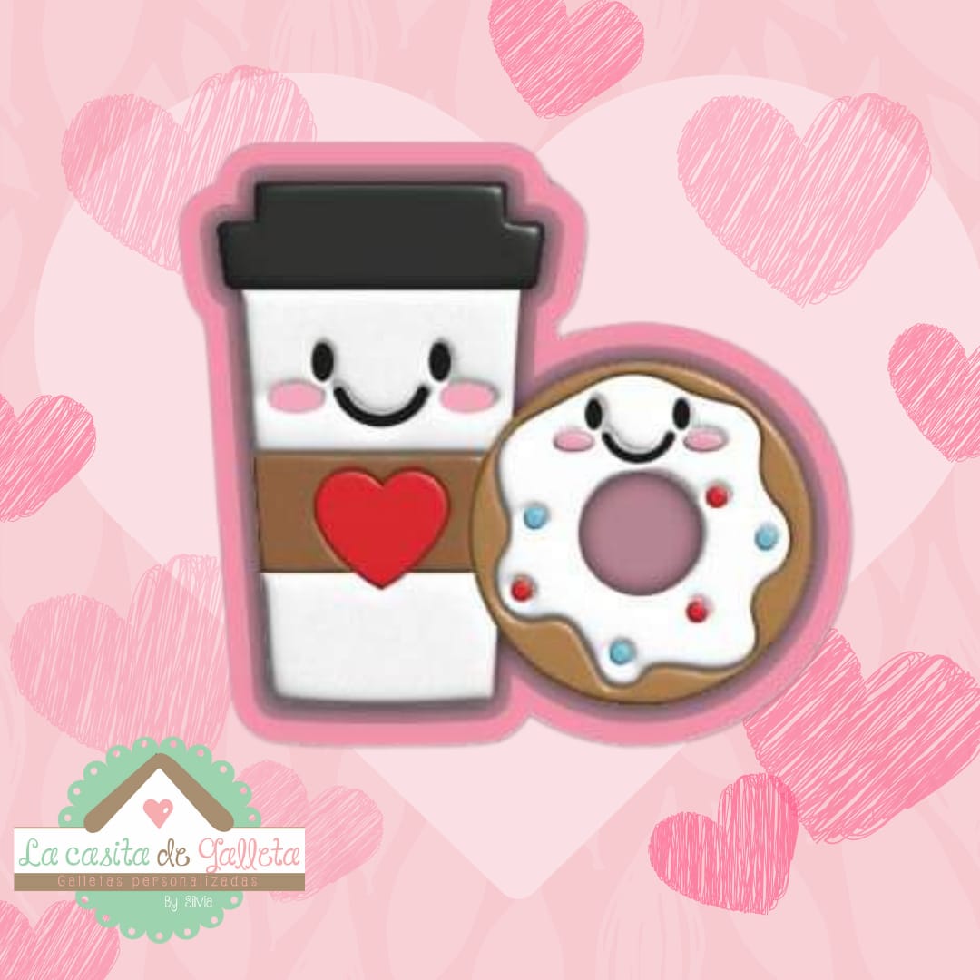 Cortador de un Vasito de café y una dona de San Valentín