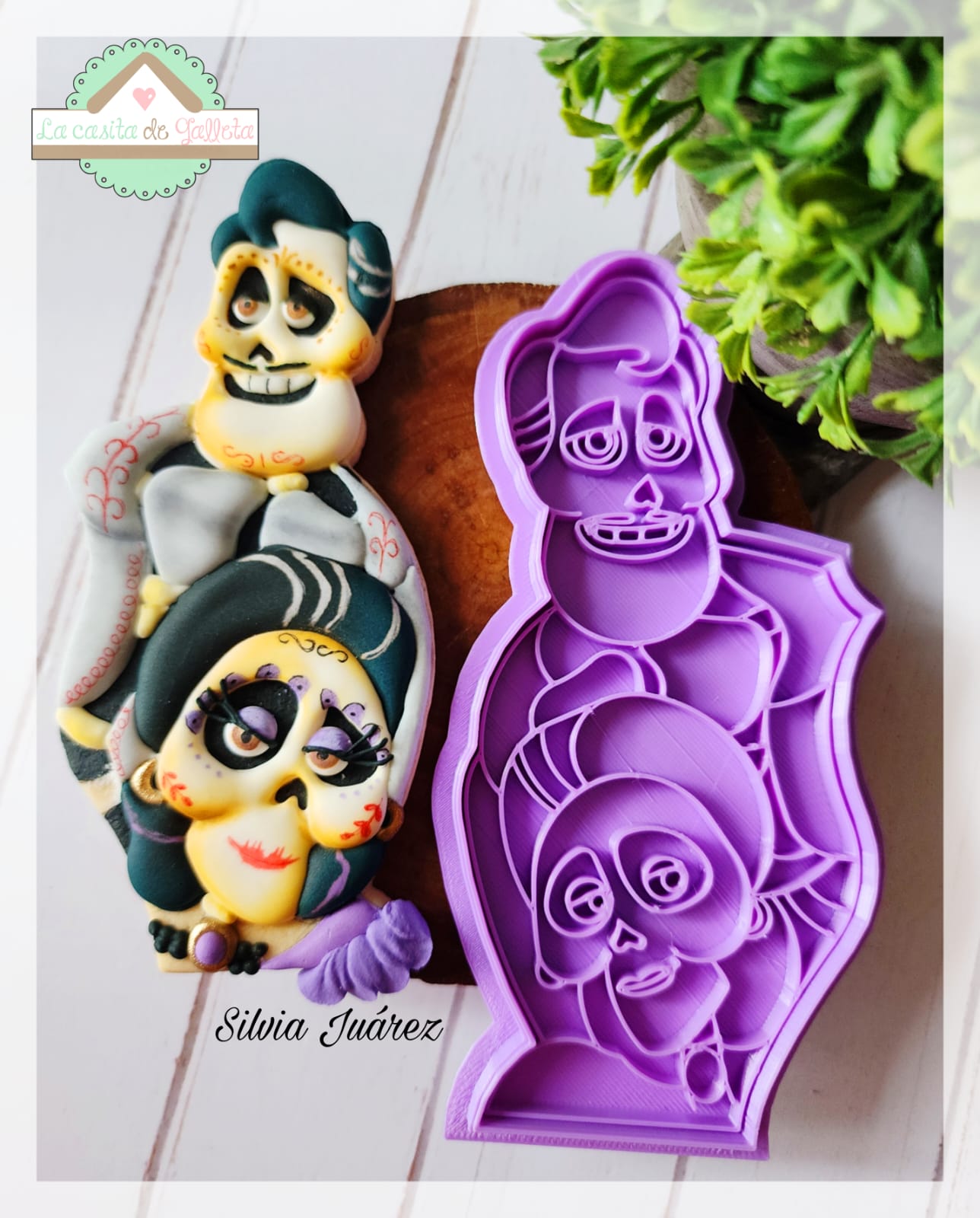 Divertido set de cortadores del curso en línea “COCO ROMPECABEZAS PRIMERA EDICION” 2 piezas Con sello y 2 piezas de contorno.